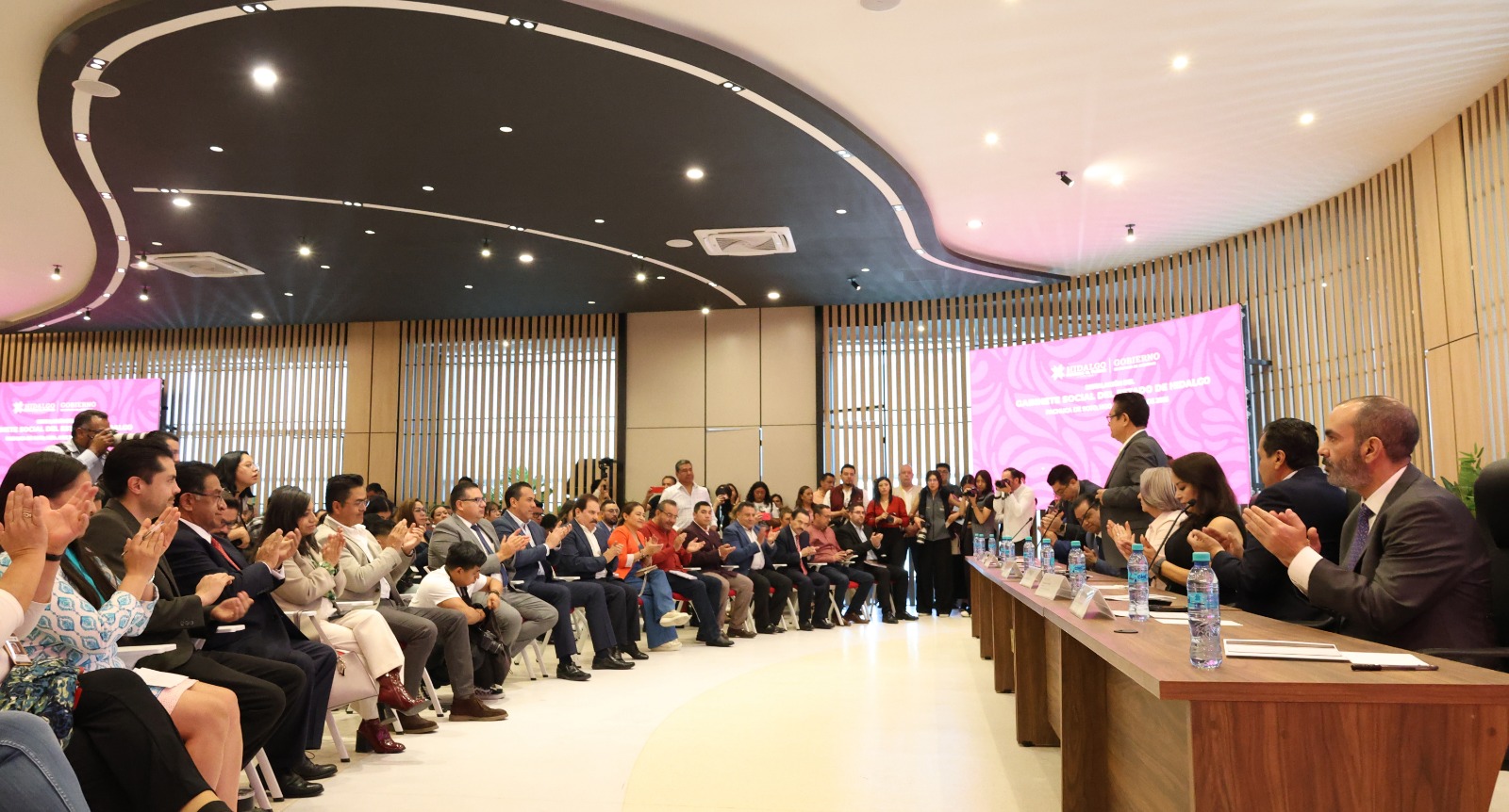También participaron los titulares de las dependencias que integran el Gabinete Social: Ricardo Gómez Moreno, secretario de Bienestar e Inclusión Social, María Esther Ramírez Vargas, secretaria de Hacienda, Álvaro Martín Bardales Ramírez, secretario de la Contraloría y Carlos Arturo Sánchez, titular del Instituto Hidalguense para Devolver al Pueblo lo Robado.