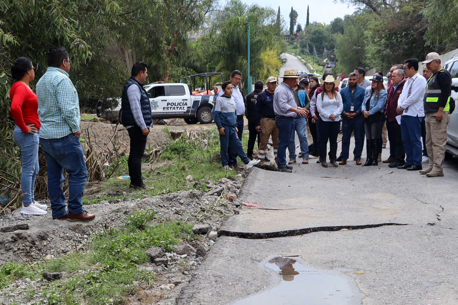 “En el camino Tezontepec-San Juan Achichilco, en una longitud de 700 metros, tuvimos azolves, de ambos lados”, aseveró el funcionario, por lo que será necesario construir muros y cunetas, así como el pavimento del vado.
