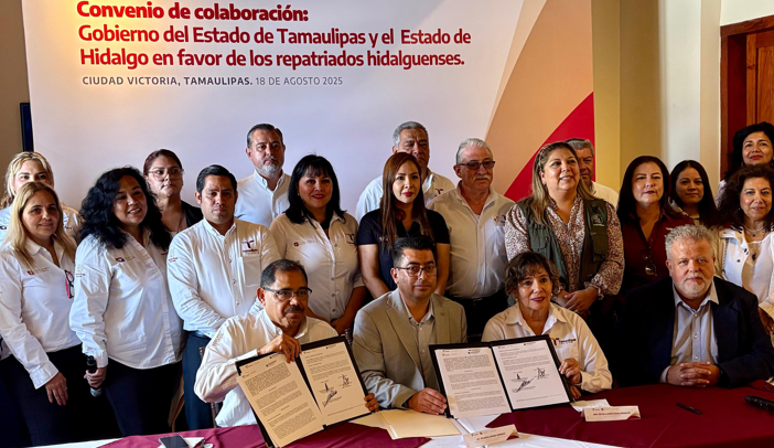 Para facilitar la transición y atención de personas hidalguenses que pasan o son retornadas por los diferentes puntos de cruce que existen en la frontera entre Tamaulipas y Texas, en Estados Unidos (EE. UU.), el gobierno de Hidalgo, que encabeza Julio Menchaca, y el de Tamaulipas, a cargo de Américo Villareal, firmaron acuerdo migratorio de colaboración.