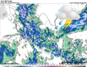 🔴 Estados con mayor extensión de tormentas y lluvias fuertes: Sonora, Chihuahua, Sinaloa, Durango, Zacatecas, Jalisco, Estado de México, Ciudad de México, Morelos, Puebla, Tlaxcala, Veracruz, Oaxaca y Chiapas.