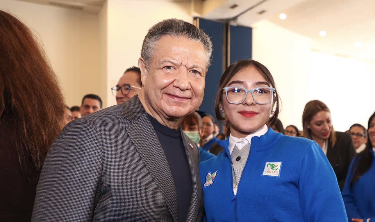 Durante su intervención, Menchaca destacó la inversión de más de 157 millones de pesos en el CECyTE Hidalgo este año, destinada a libros, uniformes, tabletas electrónicas, infraestructura escolar y la construcción de 12 laboratorios STEM.