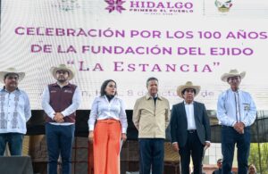 El gobernador de Hidalgo, Julio Menchaca Salazar, acompañó a la comunidad del ejido La Estancia en la celebración de su centenario, para honrar la memoria de sus fundadores, reconocer el legado de lucha, así como para refrendar el respaldo de la administración estatal al campo y a su gente.